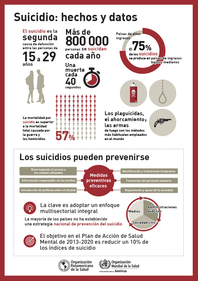 La Organización Mundial de la Salud, OMS, lleva alertando desde el 2012 que el suicidio es la segunda causa de muerte entre los jóvenes de 15 a 29 años. El nuevo informe de este año, 2015, vuelve a revelar que cada 40 segundos se produce un suicidio en el mundo y se autoelimina un adolescente.