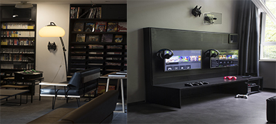 Cada habitación cuenta con una videoconsola retro y una Nvidia Shield Darcy, y a las de cuatro personas se le suman dos sets estilo retro/moderno. En el lobby hay 6 videoconsolas retro, un mini C64, un controlador Raspberry completo, y en la sala de juegos puedes encontrar 6 PCs de gama alta, 5 consolas y una estación de realidad virtual además de muchos dispositivos de mano que datan de entre finales de los 70 hasta hoy. En total hay 42 habitaciones de dos personas y 14 de cuatro, así que si quieres saber cuántas videoconsolas hay en Arcade Hotel tú mismo puedes echar la cuenta.