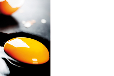 La yema tiene un 5 % de colesterol entre el resto de lípidos (32 a 35 %), también tiene un 16 % de proteínas y un 1 % de glúcidos además de cálcio, potasio y fósforo. Su color depende de la alimentación del ave.